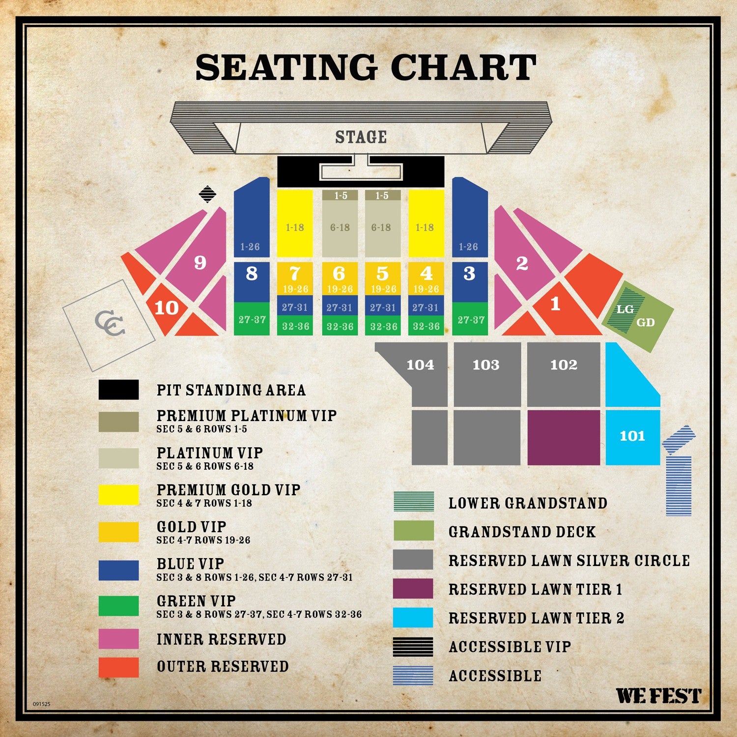 Experience WE Fest at its finest with reserved stadium-style seating in Sections 3–8, center stage, plus the added luxury of included gourmet meals and complimentary beverages throughout the weekend.